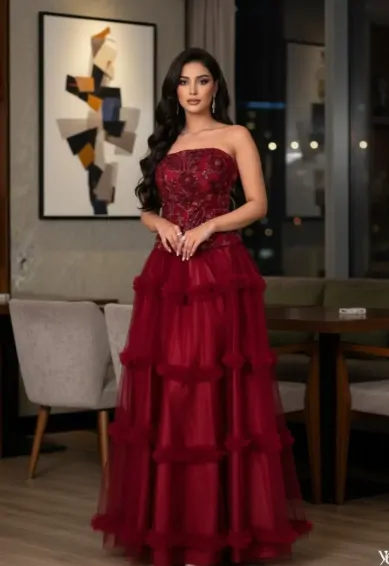 الصفحة الرئيسية اثاث فستان سهرة بتفته وردية